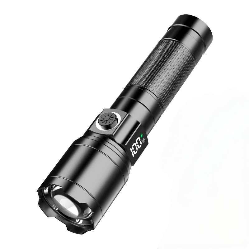 Tragbare Outdoor-Taschenlampe aus Aluminiumlegierung mit LCD-Digitalanzeige und großer Reichweite